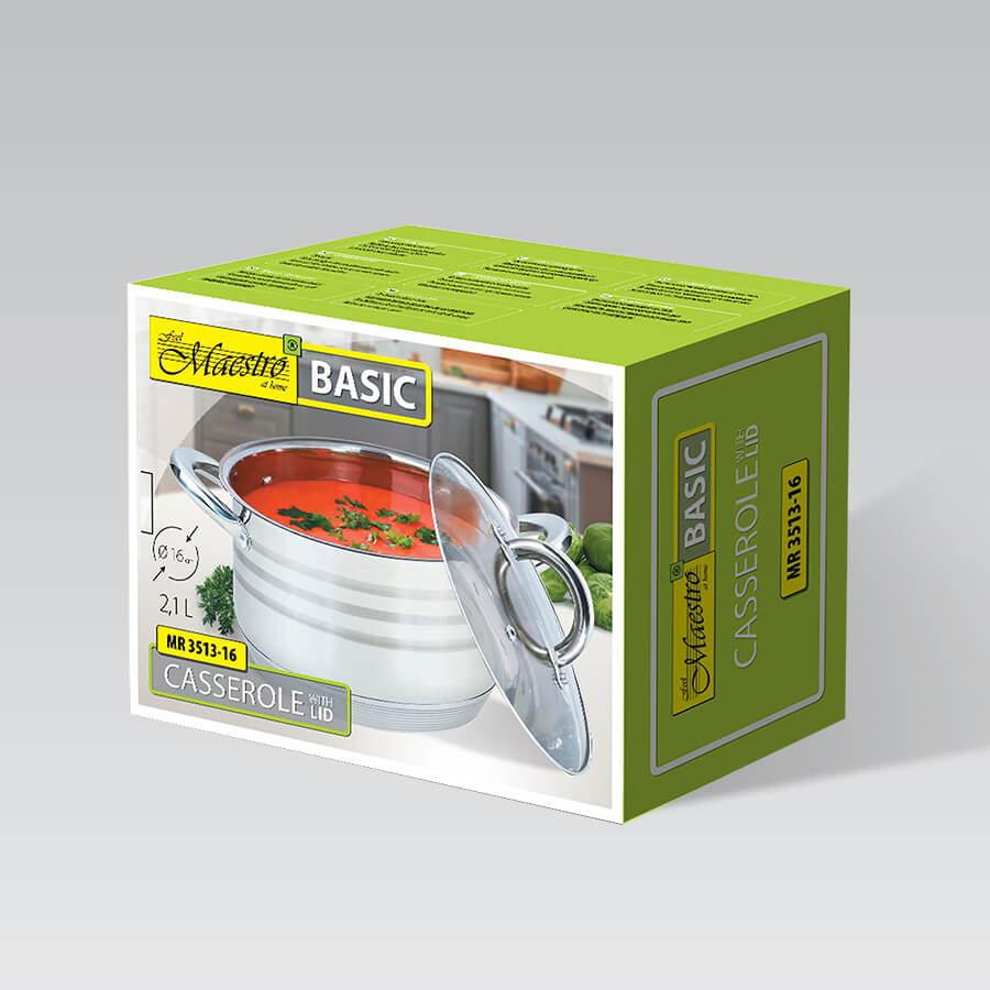 MR-3513-16 Кастрюля с крышкой, 2,1 л, многослойное термоаккумулирующее дно, Maestro Basic